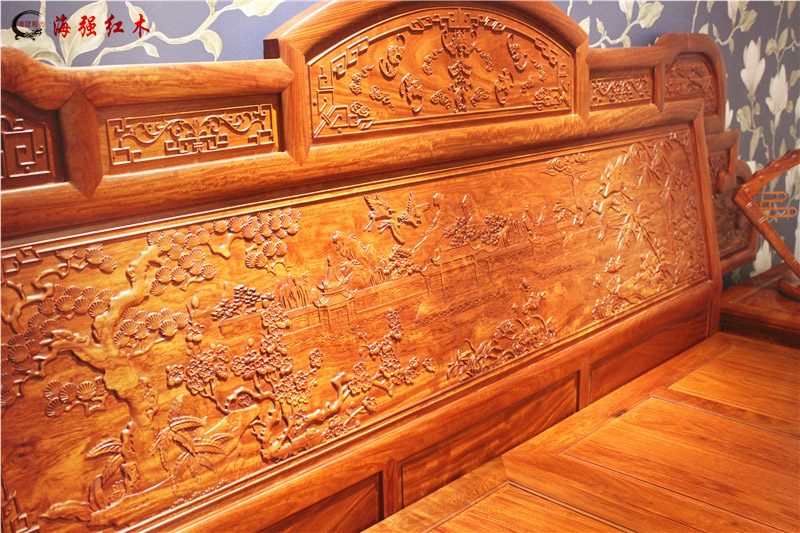 六合同春床頭板上細膩的雕刻